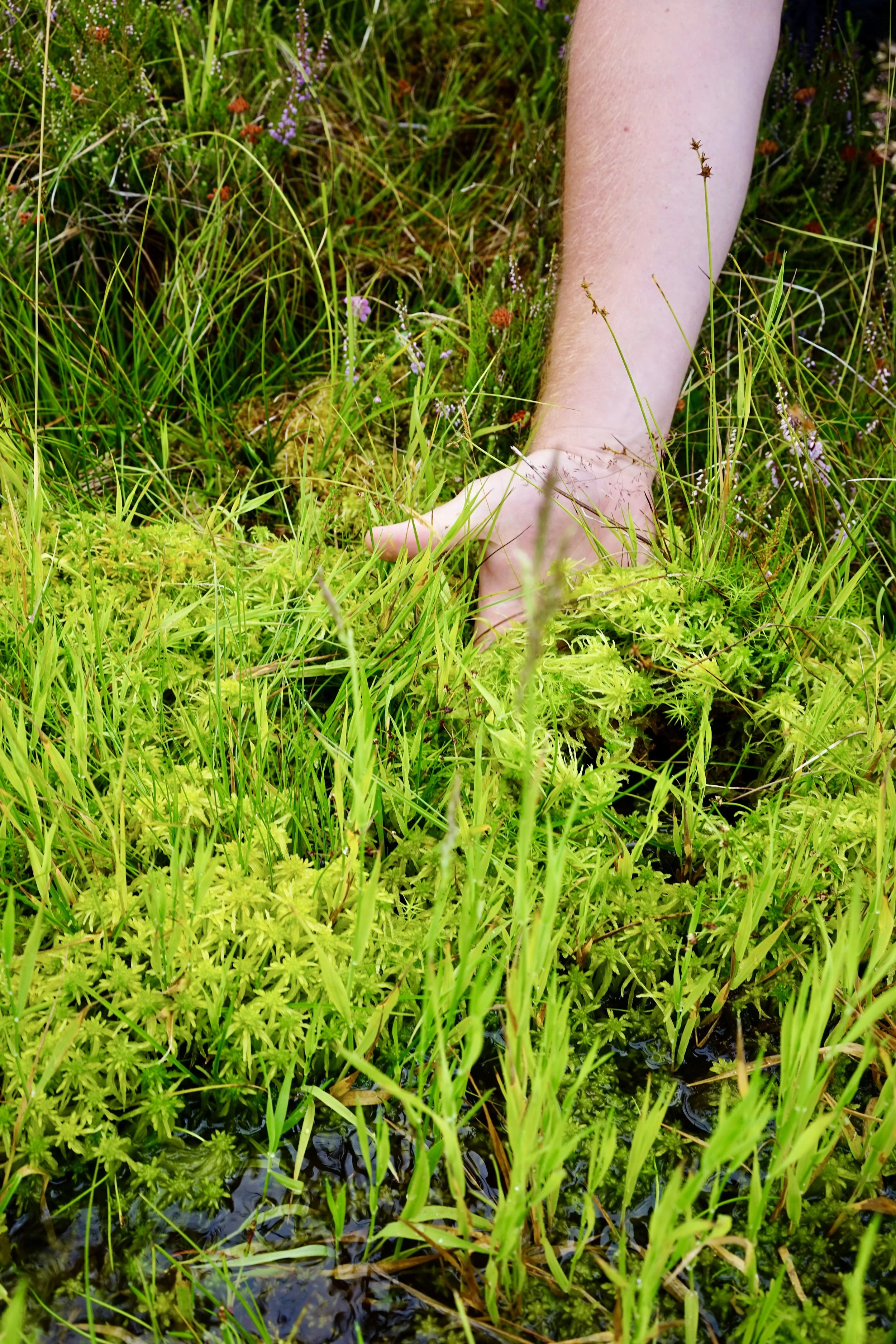 The restoration process includes reintroducing this vegetation, which is mainly Sphagnum moss.